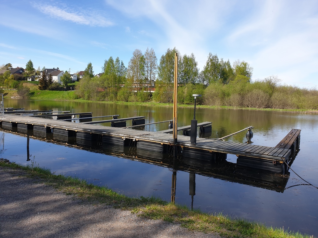 Nye pontonger ble montert på de 4 første brygge elementene sammen med tilhørende utriggere.